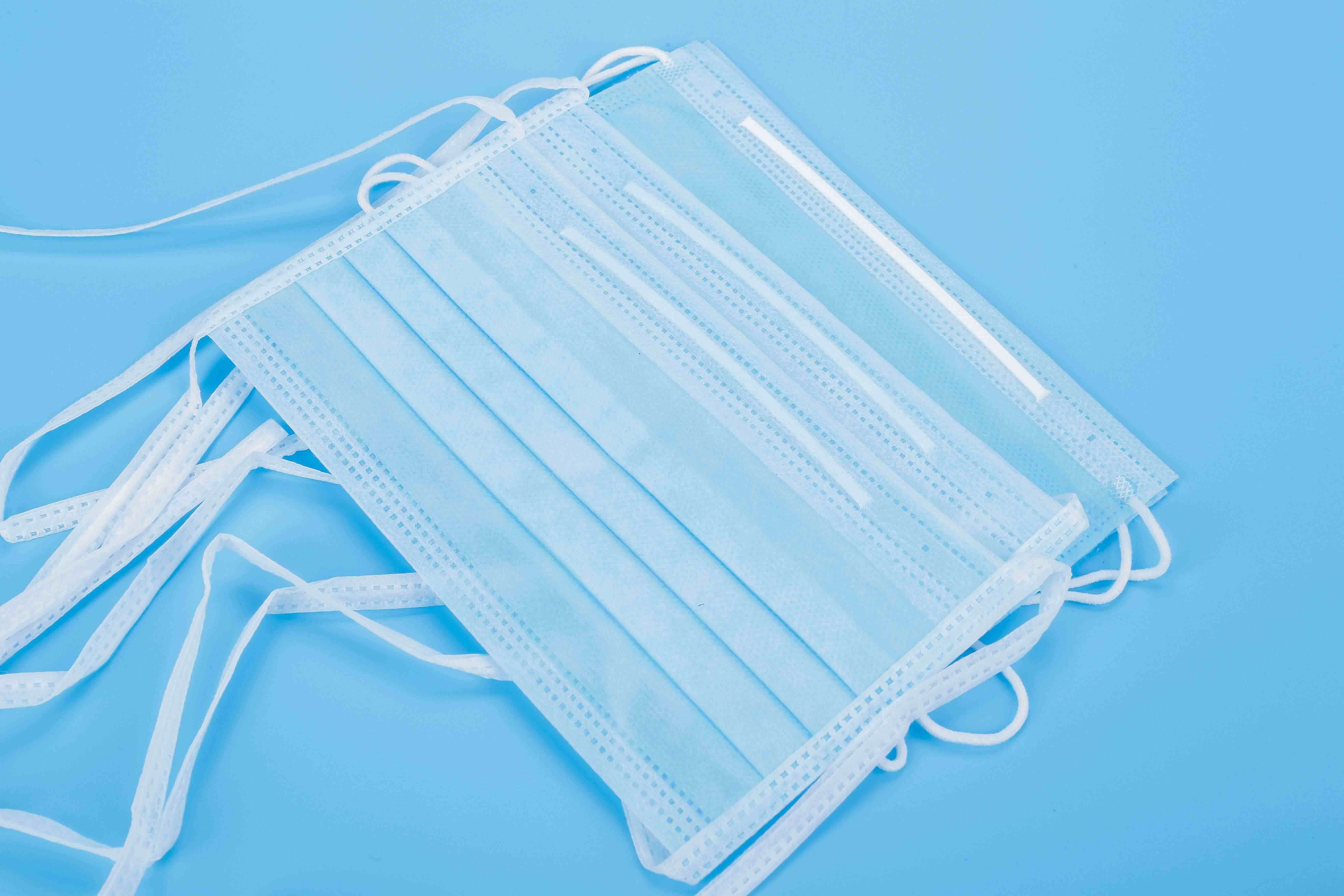一次性使用口罩按結(jié)構(gòu)不同分為兩種型號:A型由帶子和防護體組成,B型由帶子、鼻夾和防護體組成。帶子和防護體采用無紡布制成,鼻夾采用軟聚氯乙烯包裹鋁片制成